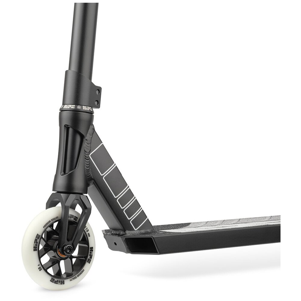Парковый аппарат с небольшими габаритами. Надежный Y-образный руль установлен на компрессию iHС, в связке с компактной доской. Стандартные ALU колеса, интегрированная рулевая, вилка ALU моноблок с возможностью установки колес диаметром до 120 мм. Установлены грипсы с фланцами по обрезку, позволяющие выбрать длину от 150 до 170 мм. Технические характеристики • Грипсы - 170 мм • Руль - CrMo4130, диаметр (31,8) , высота: 660 мм, ширина: 580 мм • Хомут (компрессия) - IHC, 2-х болтовый, AL6061-T6 • Рулевая колонка -1 1/8 интегрированная с промподшипником • Вилка - Алюминиевая, IHC, до 120 мм • Система копрессии - IHC • Дека - AL7003-T6, длина : 520 мм, ширина : 120 мм • Колесо - 110 мм, обод AL6005-T6 + PU 88А, 110х24, подшипник ABEC 9 • Тормоз - Нейлон + сталь 110 мм Вес - 3,75 кг