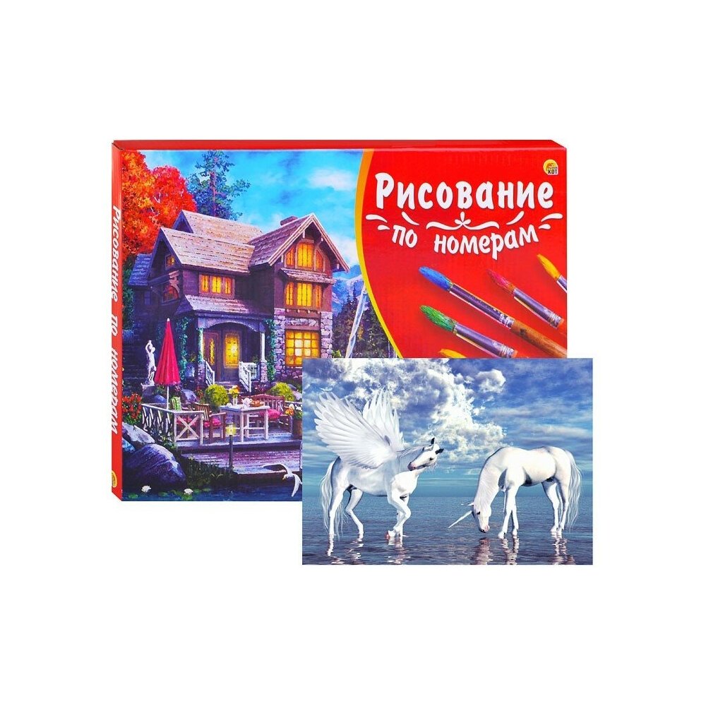 Холст с красками 40х50 по номерам. Красивые единороги (20 цв.)