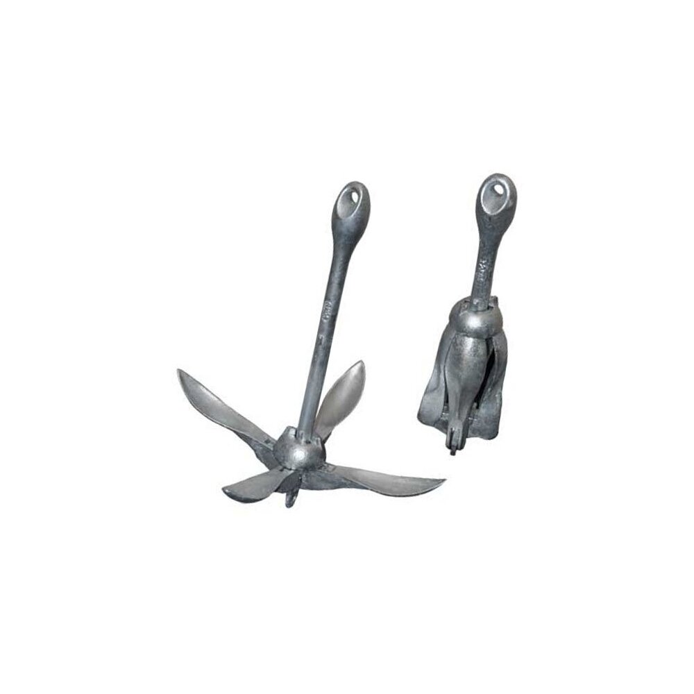 Бесштоковый якорь, применяемый для траления или малых судов. Имея разборную конструкцию, он не опасен при использовании в надувных лодках и удобен в хранении. Защищен якорь от коррозии способом горячей оцинковки, изготовлен из стали высокого качества.