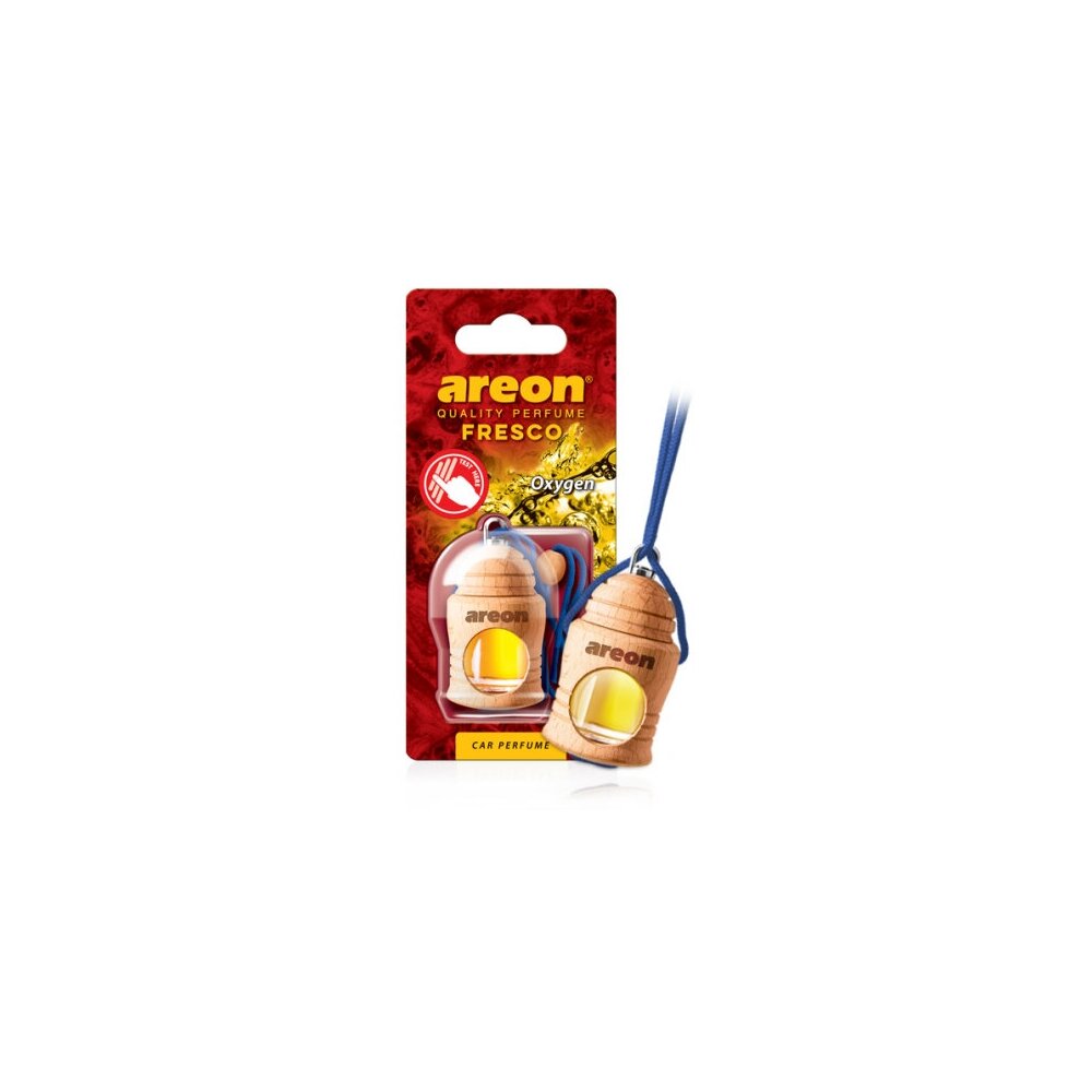 Ароматизатор AREON FRESCO - это деревянный бочонок со стеклянным сосудом внутри, наполненным ароматической жидкостью, который будет стильно смотреться в вашем авто.