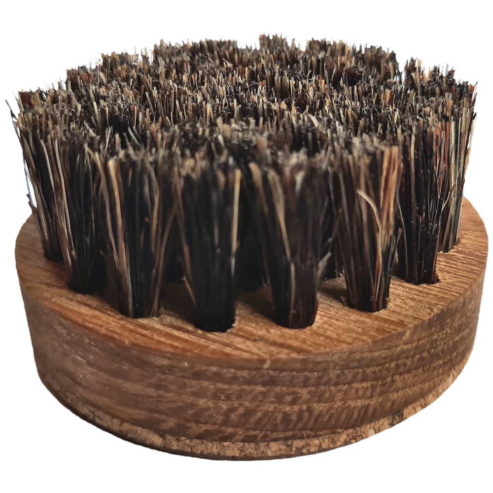Щетка для бороды MOYABORODA №1; (ручной работы) - необходимый аксессуар любого бородача. Щетка выполнена из дуба и пропитана маслом, подчеркивающим благородную и неповторимую фактуру дерева. Тщательная шлифовка создает приятные тактильные ощущения. Хорошей привычкой будет ежедневный массаж щеткой. Его выполняют в течение нескольких минут в разных направлениях. Движения не должны быть интенсивными. Жесткая натуральная щетина в массажных щетках деликатно стимулирует прикорневую зону. В ней улучшается кровоснабжение, и фолликулы насыщаются кислородом. После процедуры остается легкое ощущение покалывания. Щетку можно и нужно использовать на любом этапе отращивания бороды. Это самый деликатный вариант расчесывания. Но он очень эффективен! Движения необходимо выполнять от корней к кончикам. Желательно захватывать участок кожи. Щетинки снимают зуд и стимулируют луковицы. Они также распутывают волоски и задают им нужное направление. Размер и форма щетки идеальны: - удобно ложится в ладонь. - подходит для ношения в кармане или сумке (щетка всегда с тобой). - удобно держать в машине, чтобы всегда была возможность экстренно привезти свою бороду в порядок по пути на переговоры или на романтический ужин. Предназначена: - для укладки бороды. - для массажа кожи под бородой. Способ применения: без использования косметических средств: расчешите вашу бороду щеткой мягко массируя кожу под бородой. с использованием косметических средств: - нанесите бальзам или масло на бороду; - расчешите щеткой, чтобы равномерно распределить средство по всей длине бороды; - придайте бороде ухоженную форму. Состав: основание щетки: дуб пропитанный маслом, пробка, бук. щетина щетки: натуральная щетина кабана. Габариты щетки: диаметр: 58мм высота: 34мм высота ворса: 20мм