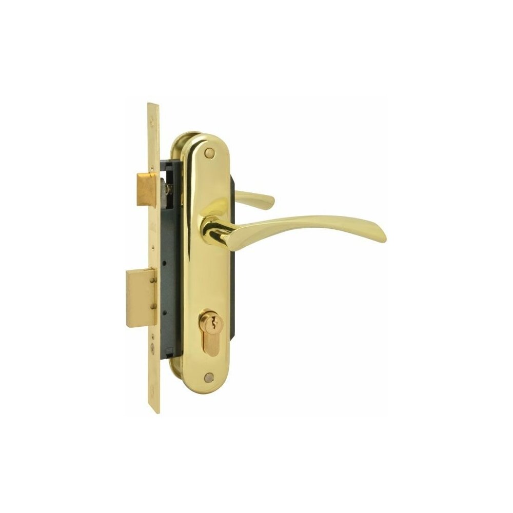 Замок врезной цилиндровый Нора-М 100-70 Л комплект с ручками - Золото