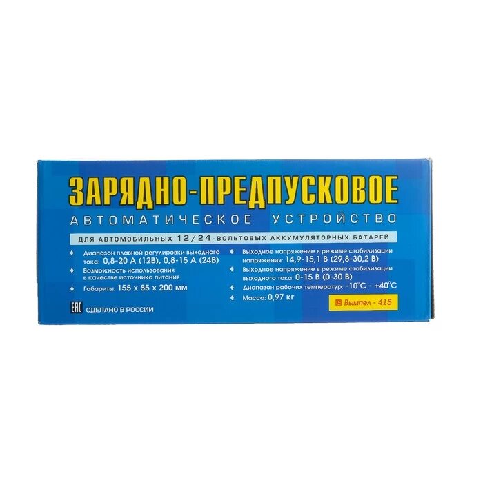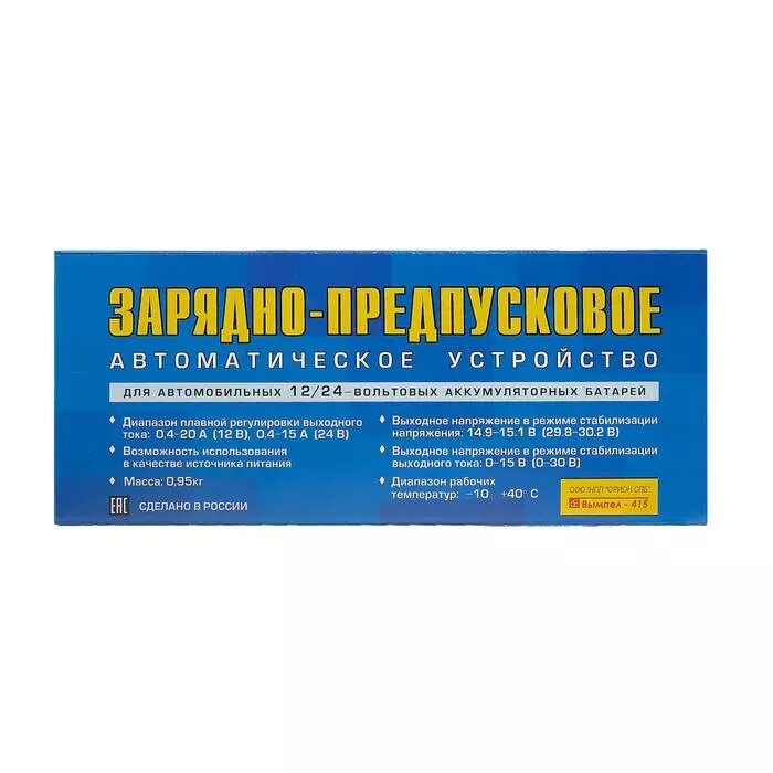 Зарядно-предпусковое устройство "Вымпел-415", 0.8-20 А, 12/24 В