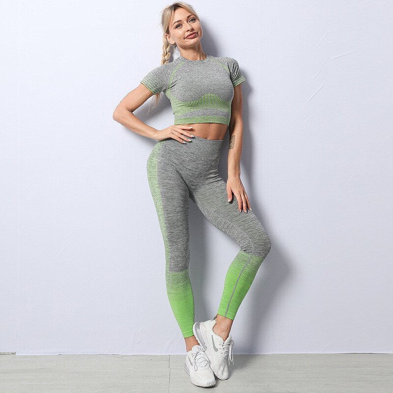 Женские Yoga Комплекты Yoga Спортивные леггинсы с короткими рукавами и высокой талией Спортзал Комплект Yoga