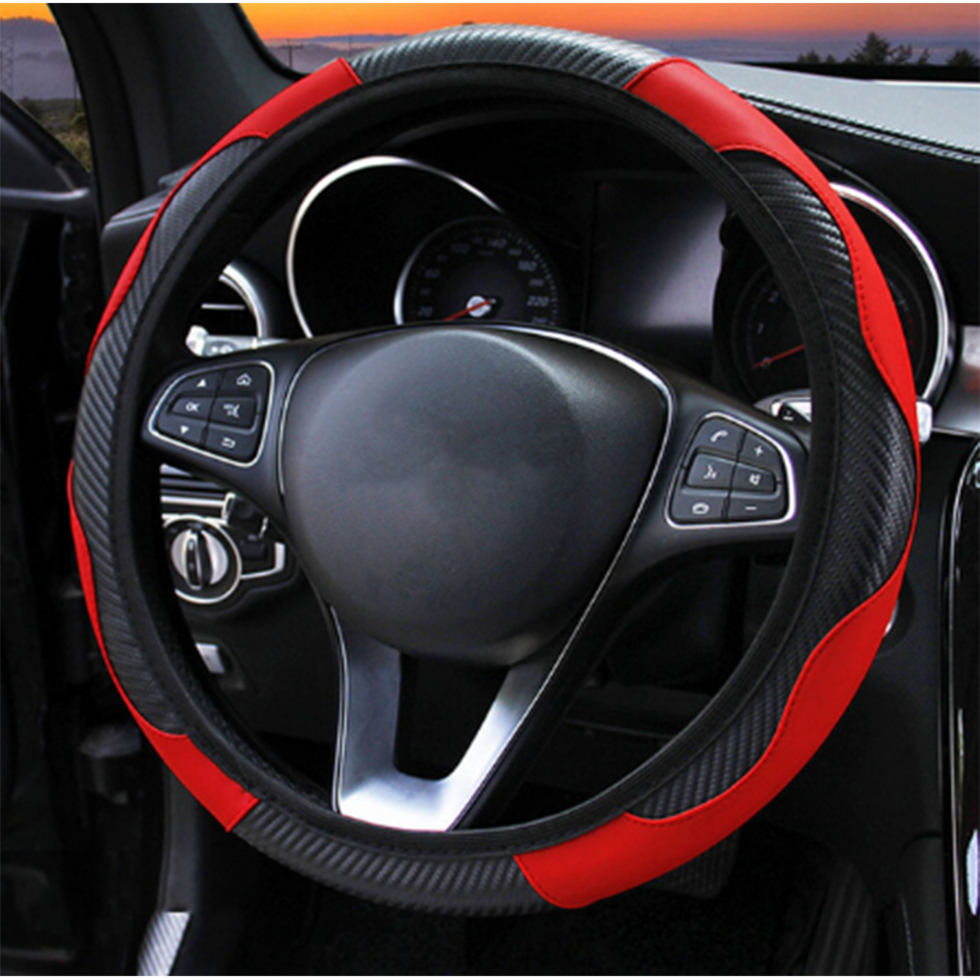 38 см Авто Авто Кожаная крышка рулевого колеса из углеродного волокна 15 дюймов Авто противоскользящая