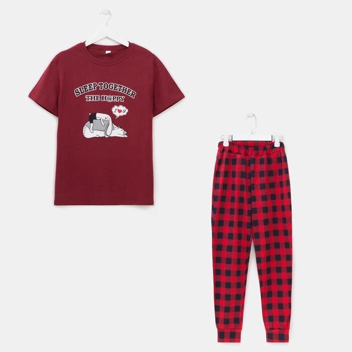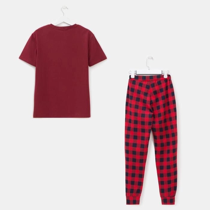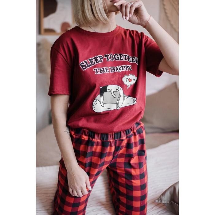 Пижама женская (футболка, брюки) цвет бордовый, р-р 44