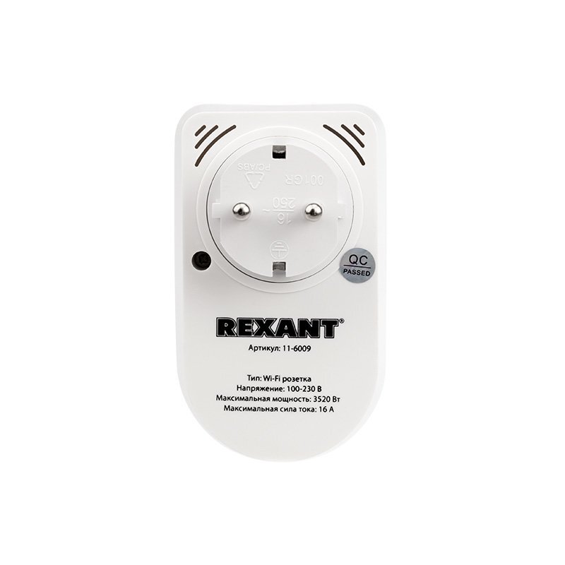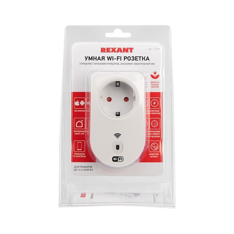 Умная Wi-Fi розетка/дистанционное управление бытовыми приборами 16 А, REXANT, 11-6009 603505