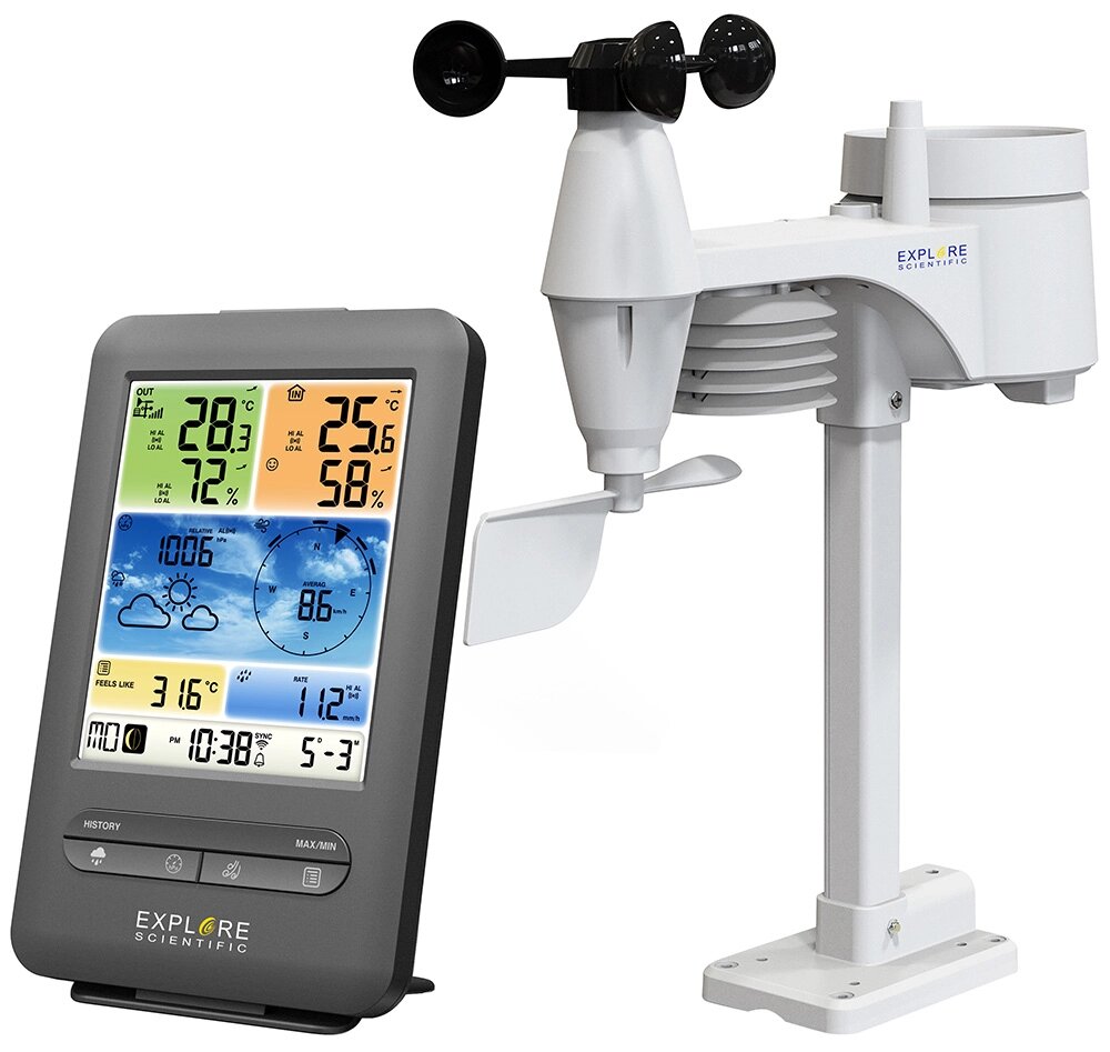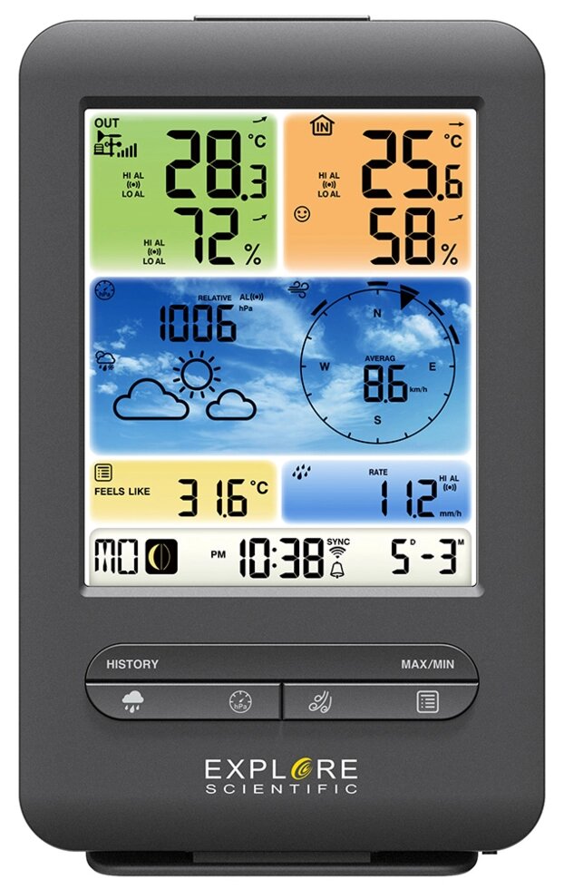 Метеостанция Explore Scientific «5 в 1» Wi-Fi с цветным дисплеем, черная 75912