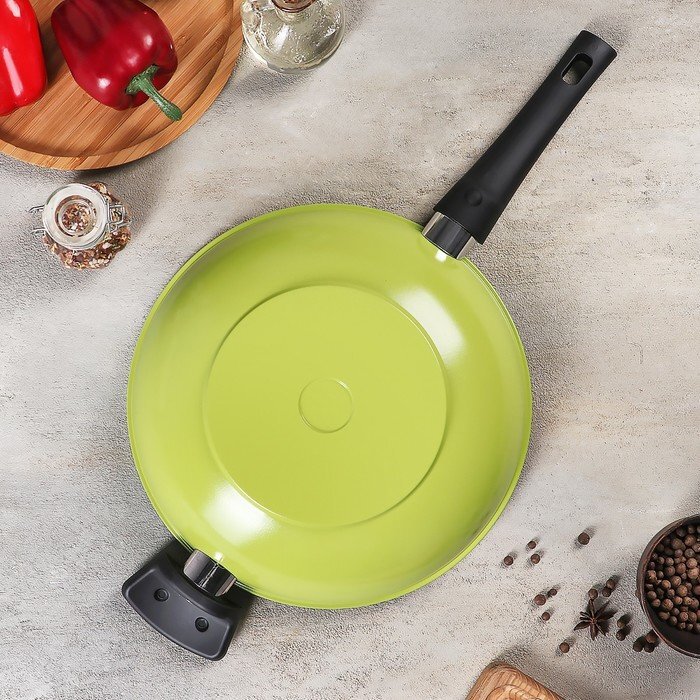 Сковорода-ВОК Casta Color, d=28 см, съёмная ручка, цвет зелёный