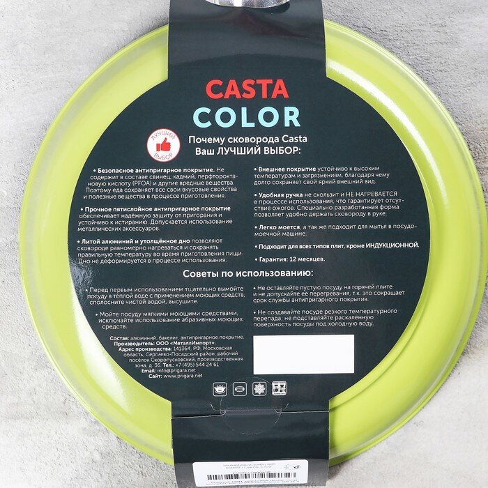 Сковорода Casta Color, d=24 см, цвет зелёный