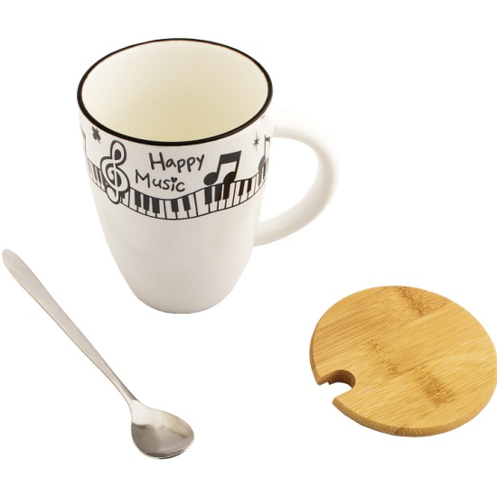 вязь музыкального рисунка довершит согревающую симфонию.Особенности:Материал: кружка-качественная керамика, ложка-сталь, крышка-бамбук.Размер только кружки: 114*82*114 мм.Размер крышки: 10*96*96 мм.Размер ложки: 163*24*5 мм.Вес нетто с крышкой и ложкой: 334 гр.Полезный объём: 330 мл.Полный объём: 390 мл.* Перед первым использованием тщательно промыть в теплой воде с добавлением средства для мытья посуды.* Деревянную крышку не рекомендуется мыть в посудомоечных машинах и использовать в микроволновых печах.* Использовать кружку в микроволновых печах строго без ложки и желательно без крышки.