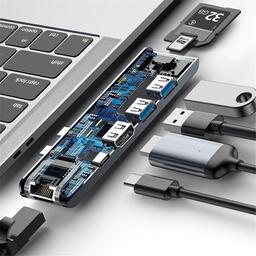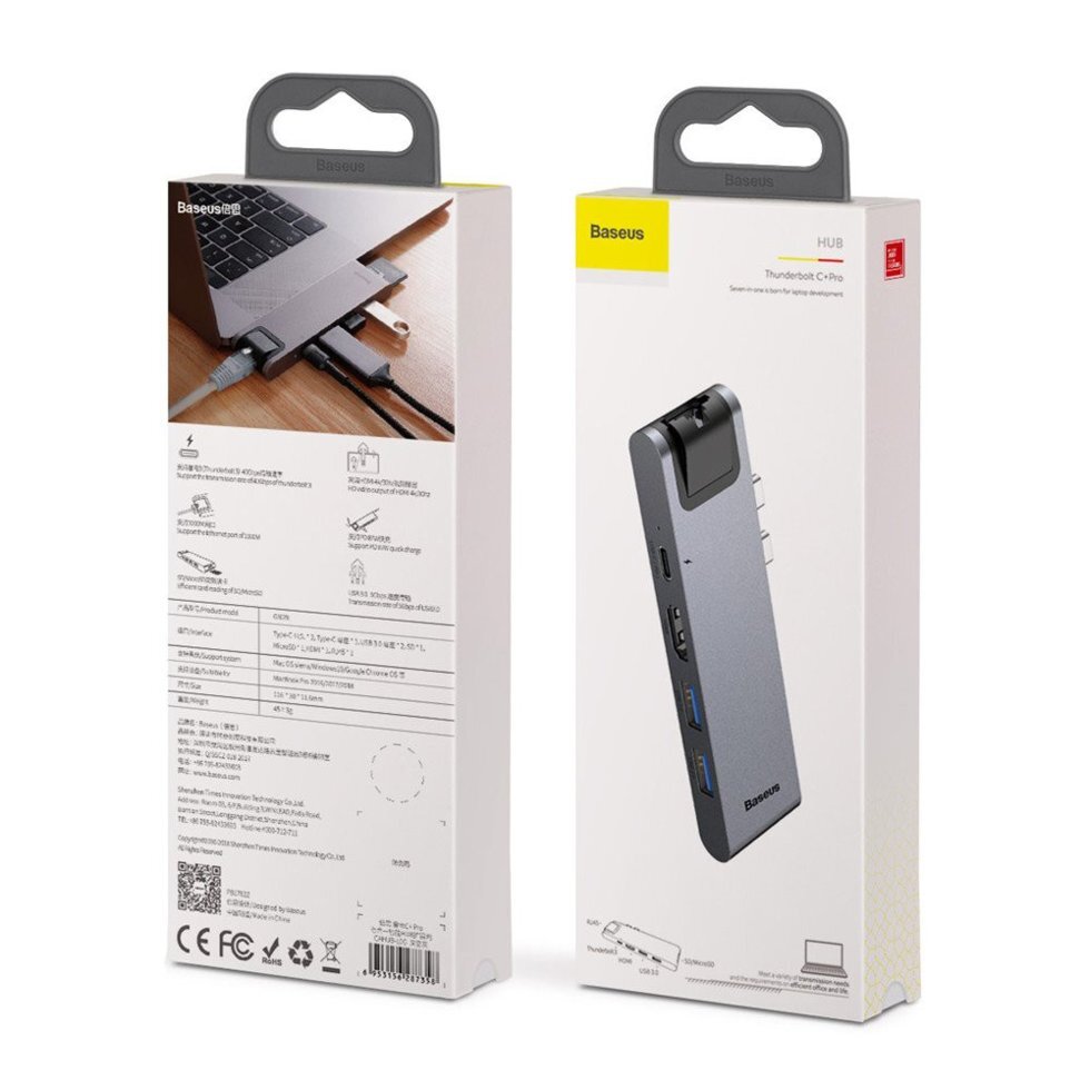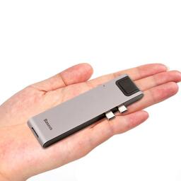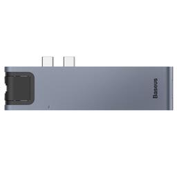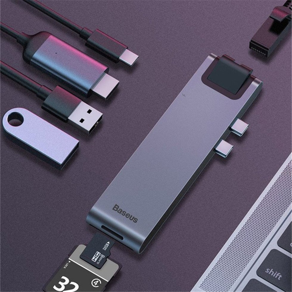 Baseus 7 в 1 двойной адаптер Type-C USB C Hub с 2 портами USB 3.0 / 4K HD интерфейс Дисплей/RJ45 гигабитный