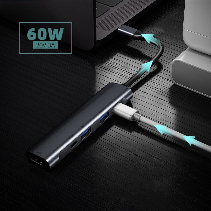 Bakeey 5-in-1 USB type-C Док-станция HUB-адаптер с PD 60 Вт power delivery / USB 2.0 / USB 3.0 / 4K hdmi /