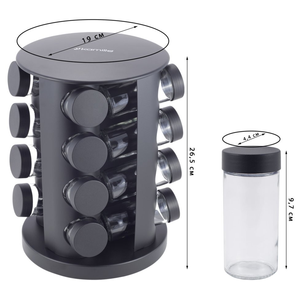 Набор ёмкостей для специй Kamille КМ-7046 (16 шт.) на круглой подставке