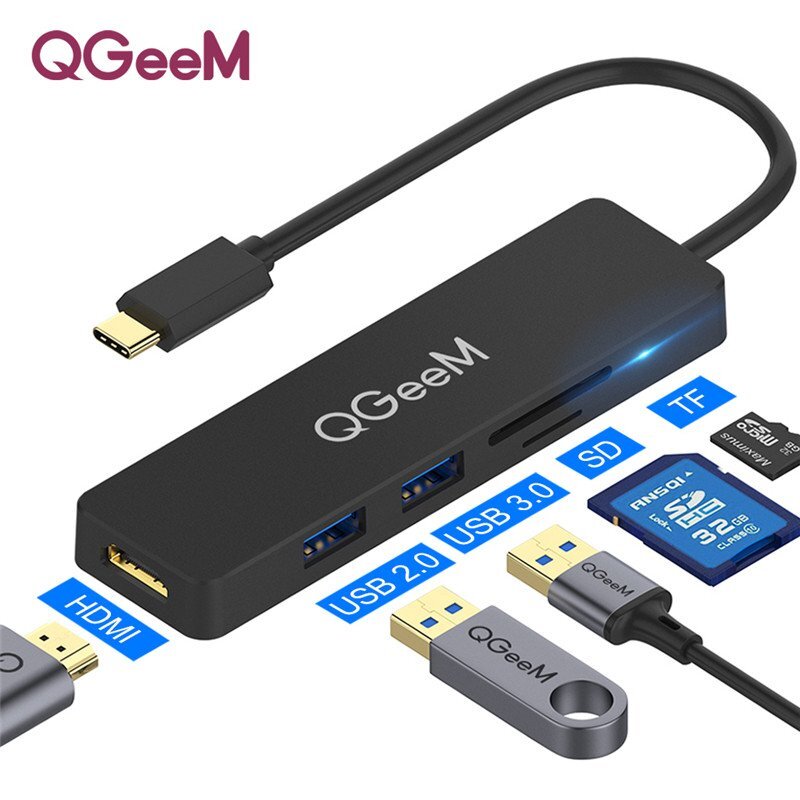QGEEM 5-in-1 USB C HUB адаптер для док-станции адаптер разветвитель с 4K HDMI HD Дисплей / USB 2.0 / USB 3.0 /