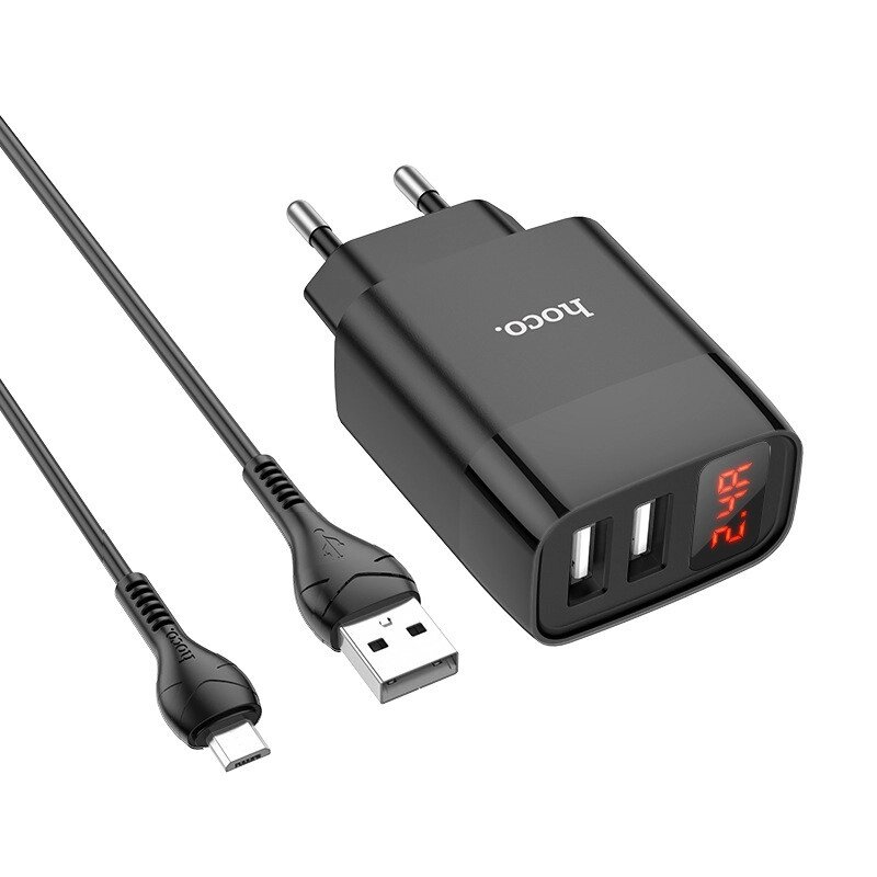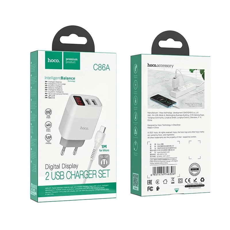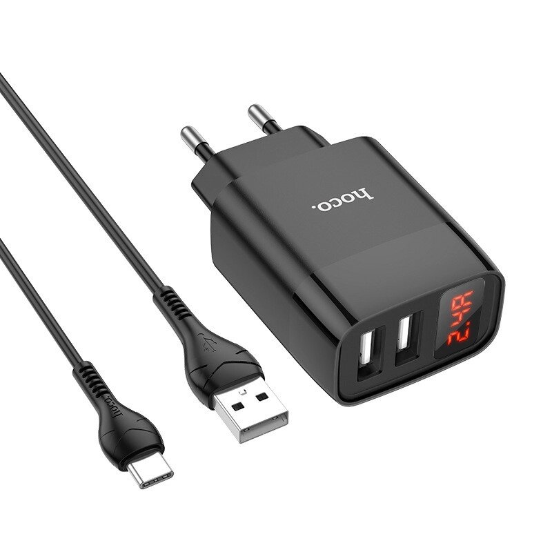 HOCO C86A Dual-Port USB Digital Дисплей Комплект зарядного устройства Быстрая зарядка Адаптер настенного