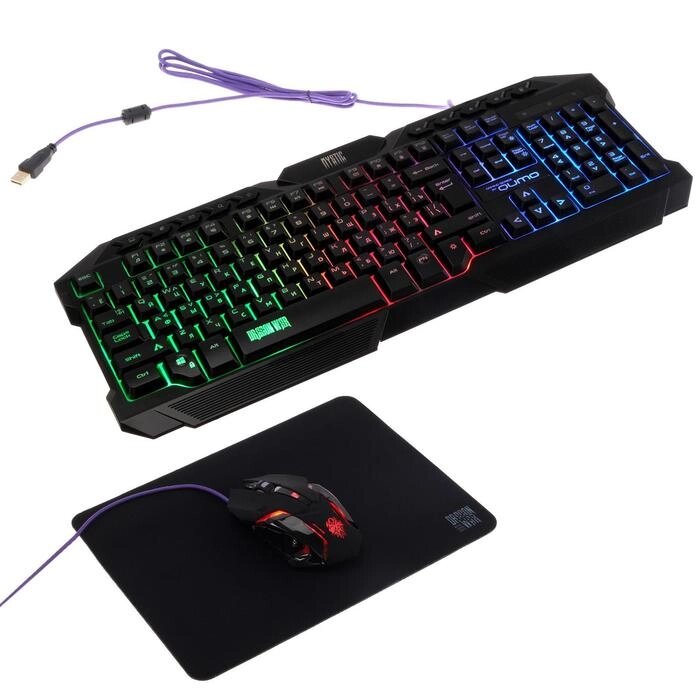 Комплект клавиатура и мышь Qumo Mystic K58/M76, проводная, мембранная, 3200 dpi, USB, чёрный