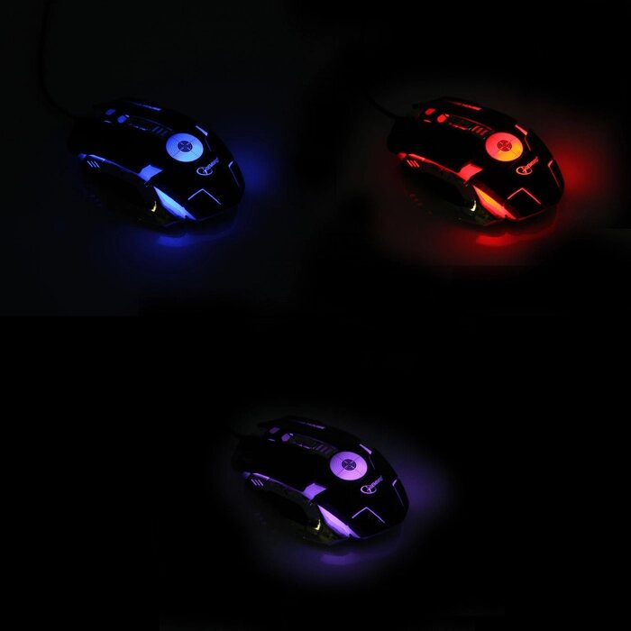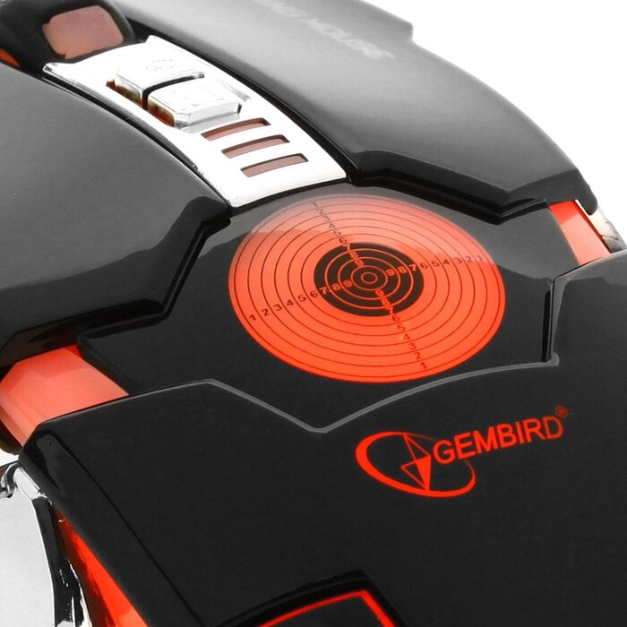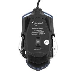 Мышь Gembird MG-530, игровая, проводная, 7 кнопок, подсветка, 3200 dpi, USB, чёрная