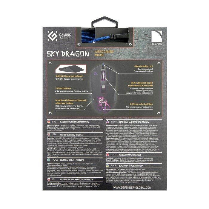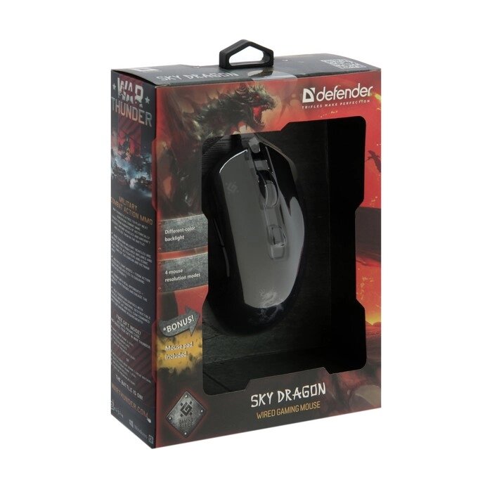 Мышь Defender Sky Dragon GM-090L, игровая, проводная оптика,6 кнопок, 3200 dpi, чёрная