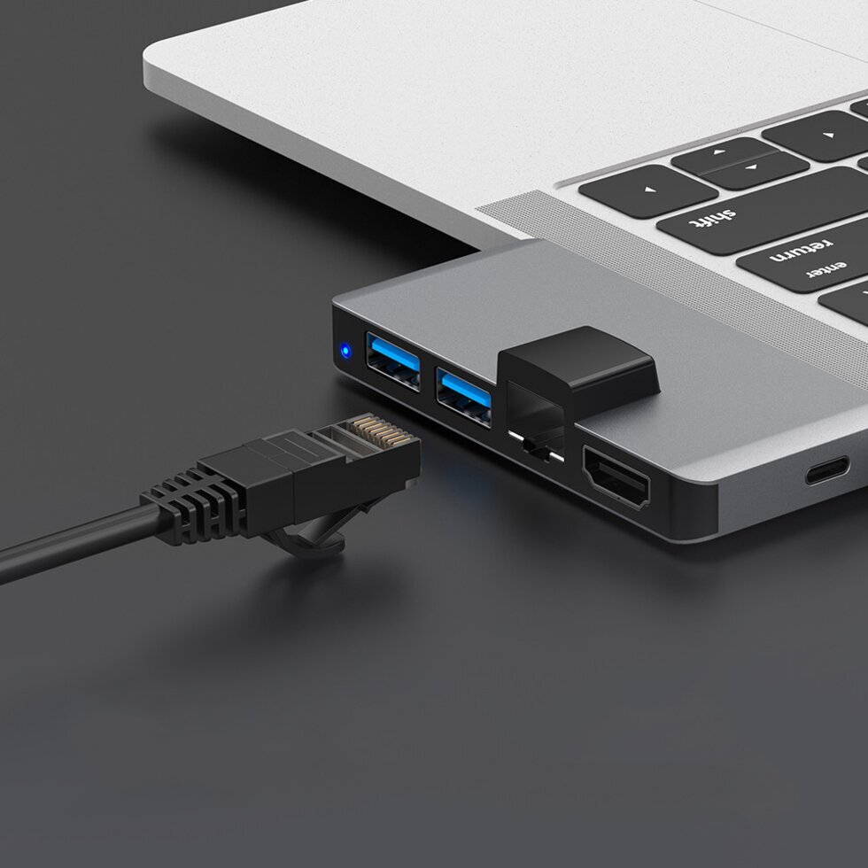 Концентратор Rocketek USB 3.0 Type-C 4K HD Адаптер Rj45 Gigabit Ethernet 1000 Мбит / с TF / SD Card Reader PD