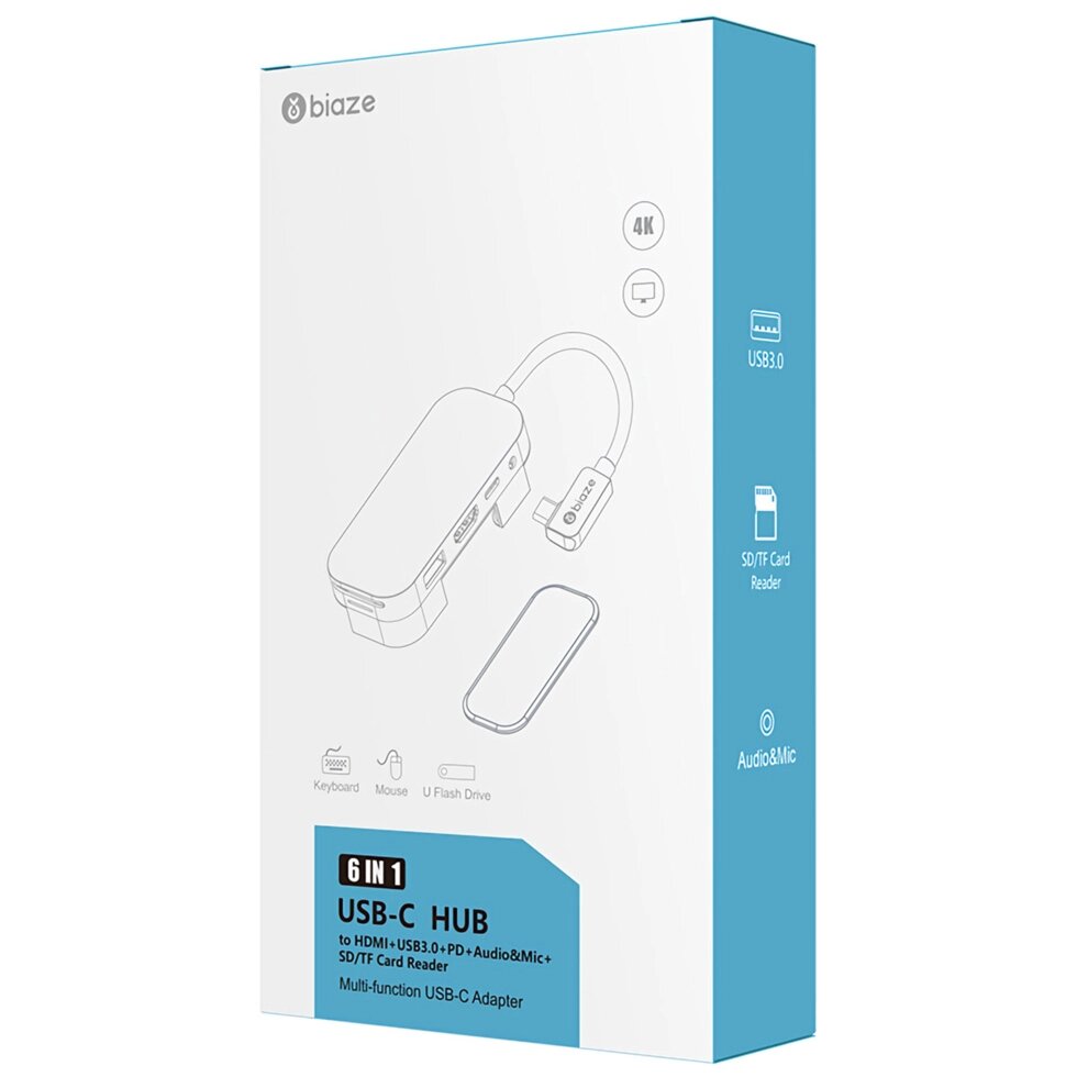 BIAZE R33 6-in-1 USB-C Hub Type-C - USB3.0 Адаптер HDMI-совместимый конвертер SD / TF Card Reader PD Быстрая