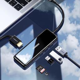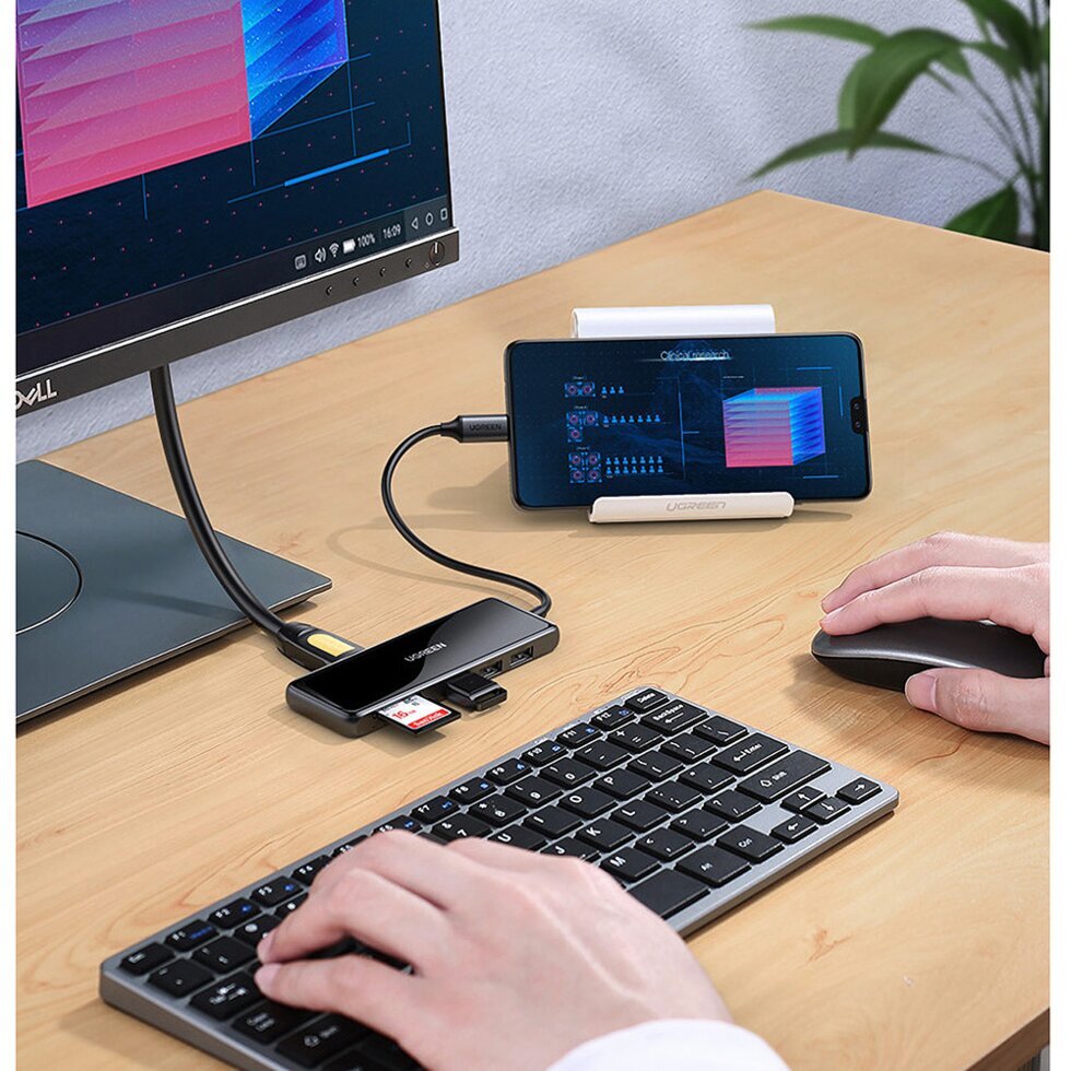 UGREEN 6 in1 USB C Hub Splitter Док-станция с 3 портами USB3.0 TF / SD Card Reader HDMI адаптер для Apple