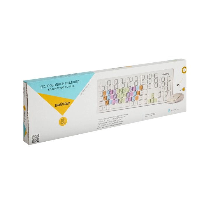 Комплект клавиатура и мышь Smartbuy 218346AG, беспроводной, мембранный, 1500 dpi, белый