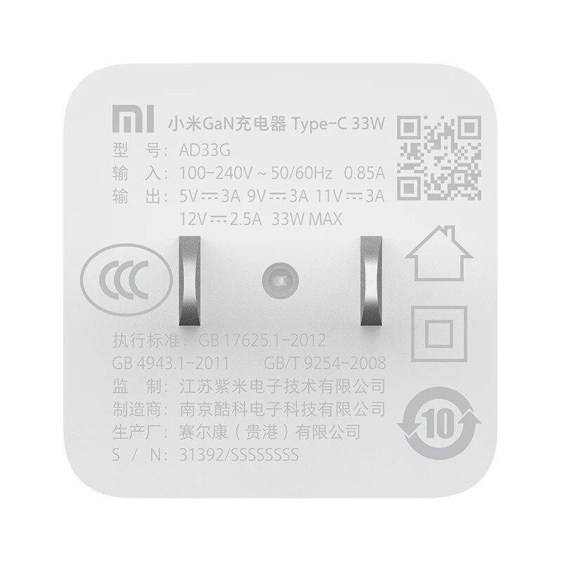 Оригинал Xiaomi AD33G 33W GaN Quick Charger 3A Type-C PD Быстрая зарядка с кабелем Type-C - Type-C