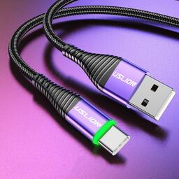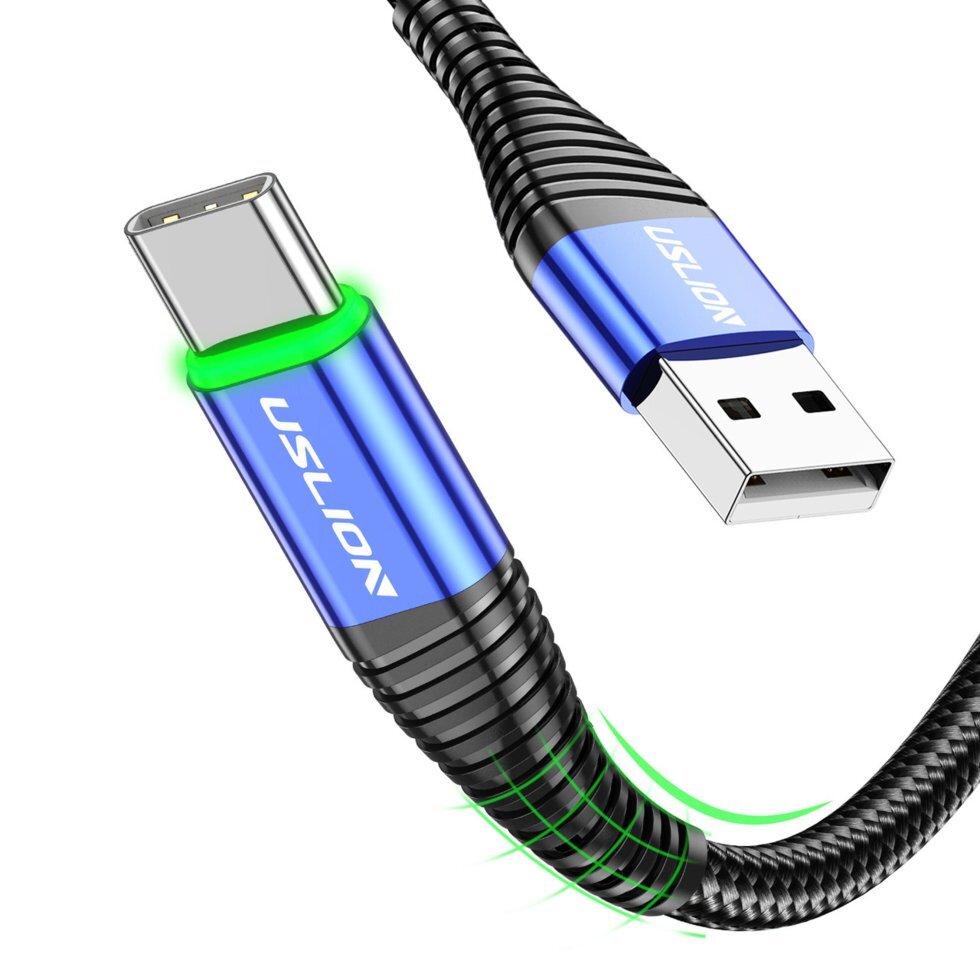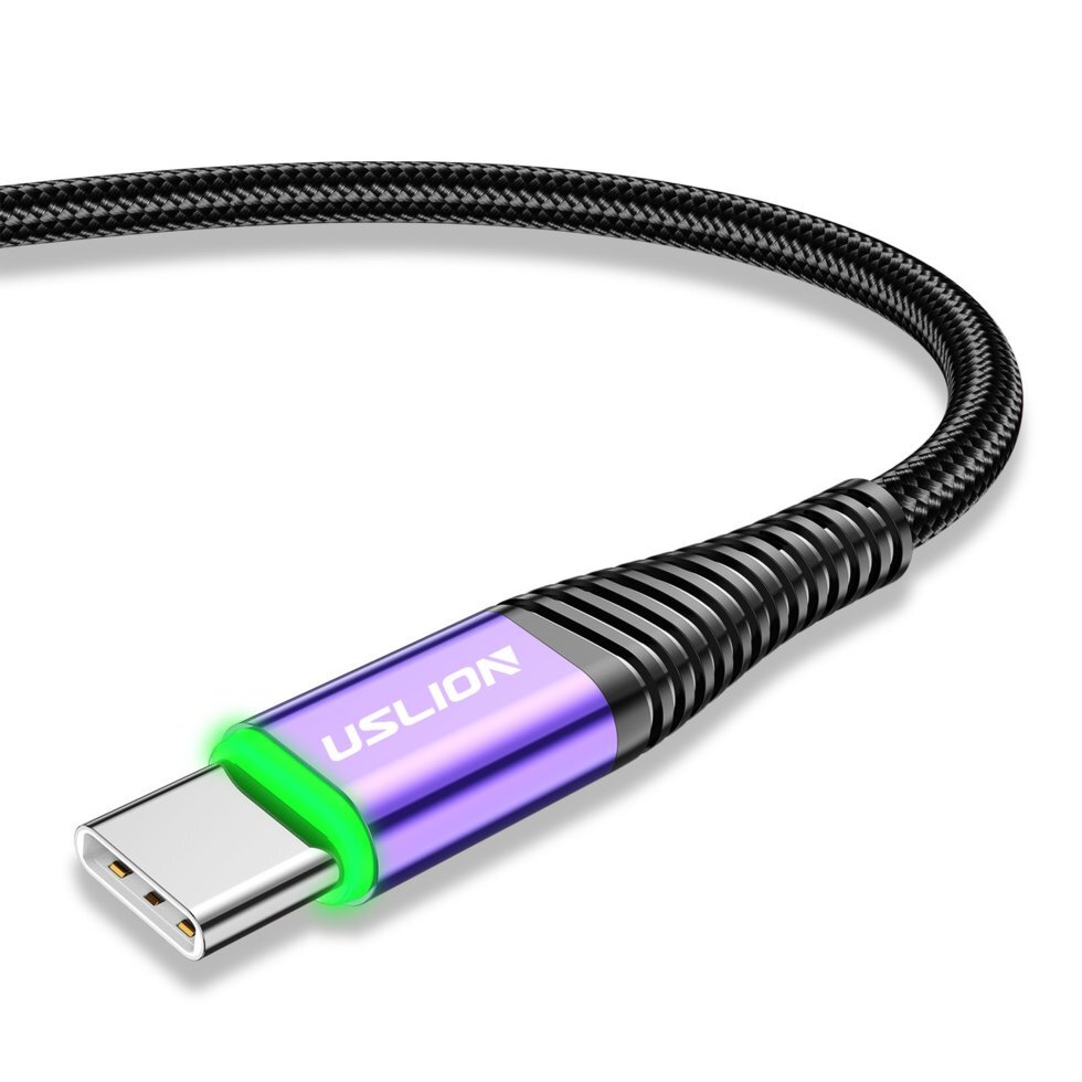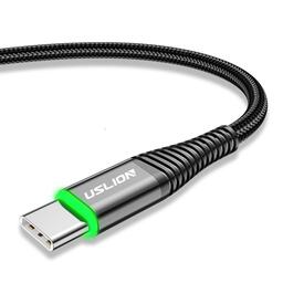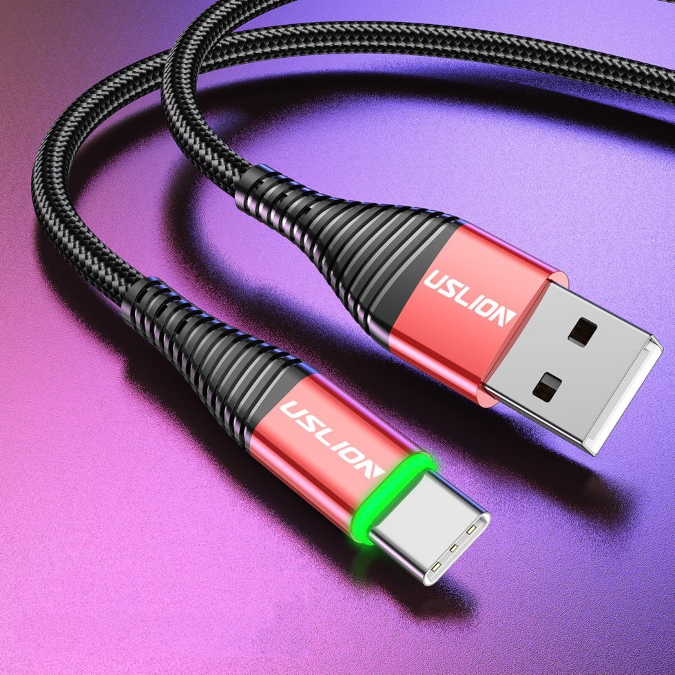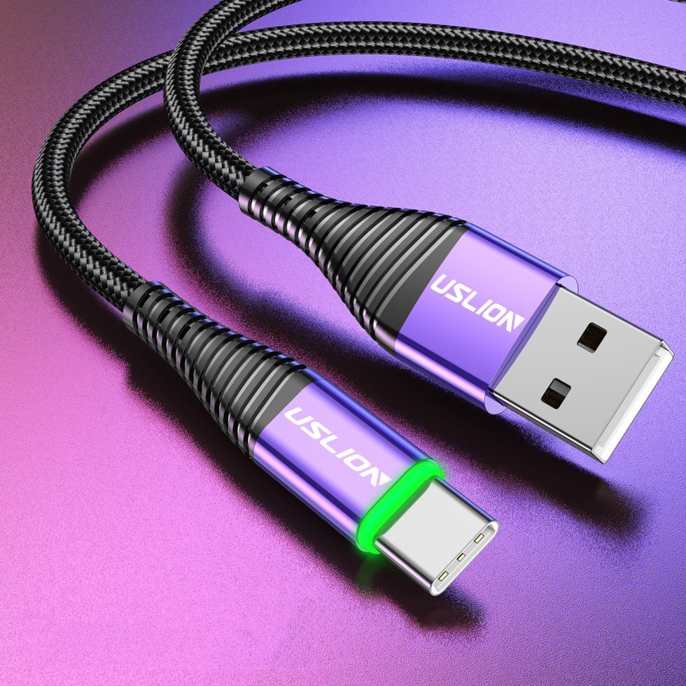 USLION US0128 3A LED Nylon Быстрая зарядка Type-C Кабель для передачи данных для Samsung S10 + Xiaomi Redmi