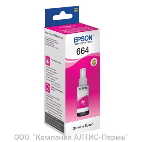 Чернила EPSON (C13T66434A) для СНПЧ EpsonL100/L110/L200/L210/L300/L456/L550, пурпурные, оригинальные