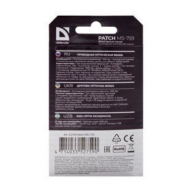 Мышь Defender Patch MS-759, проводная, оптическая, 3 кнопки, 1000 dpi, USB, чёрная