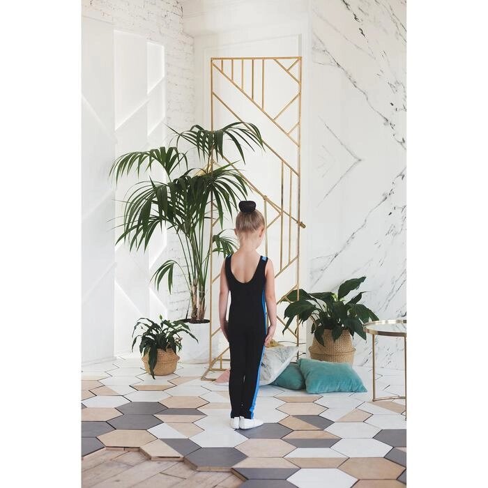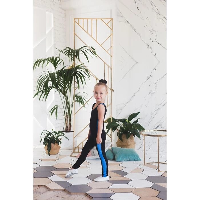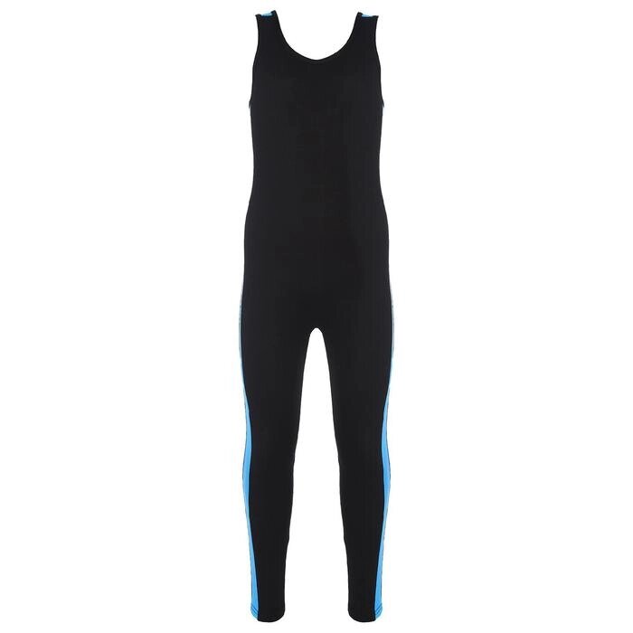 Комбинезон гимнастический с лампасами (GD2102), размер 34, цвет чёрный-бирюза