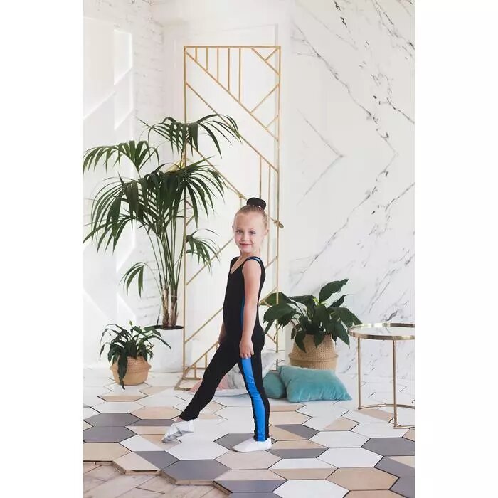 Комбинезон гимнастический с лампасами (GD2102), размер 36, цвет чёрный/бирюзовый