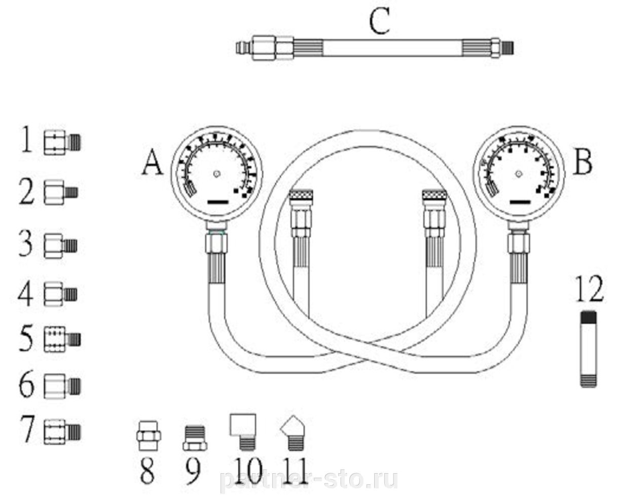 JTC-4250 Тестер давления масла КПП с двумя манометрами в кейсе