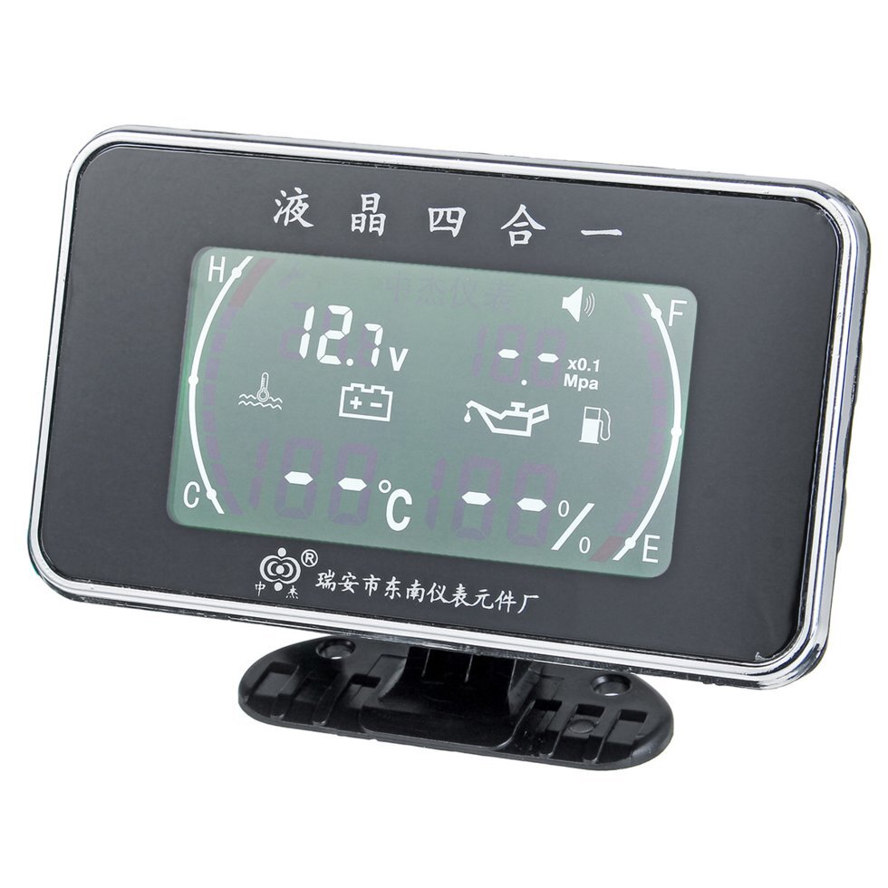 12V 24V M10 4-In-1 LCD Авто Цифровой аварийный манометр Вольтметр Масло Давление Топливо Вода Температура 1 /