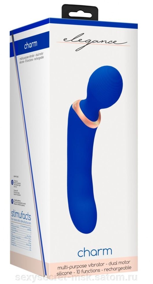 Синий двусторонний вибратор Charm - 18 см. ELE014BLU
