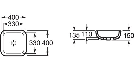 • Форма раковины квадратная
