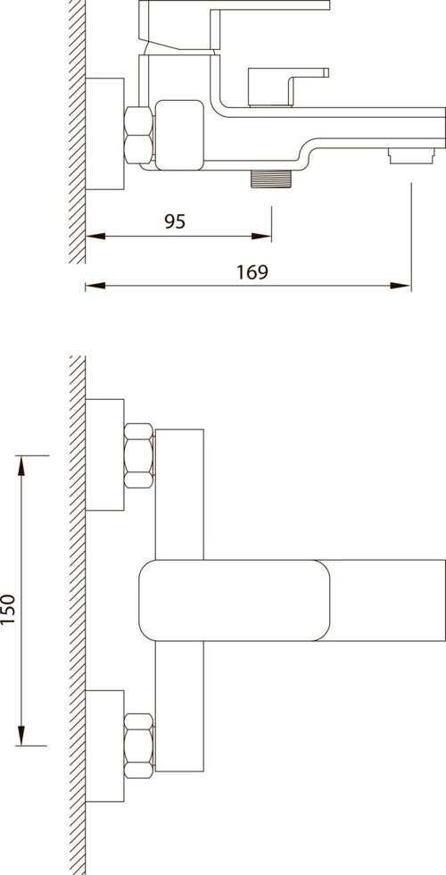 • Оснащение эксцентрики, настенный держатель, душевой шланг, душевая лейка, аэратор, переключатель потоков