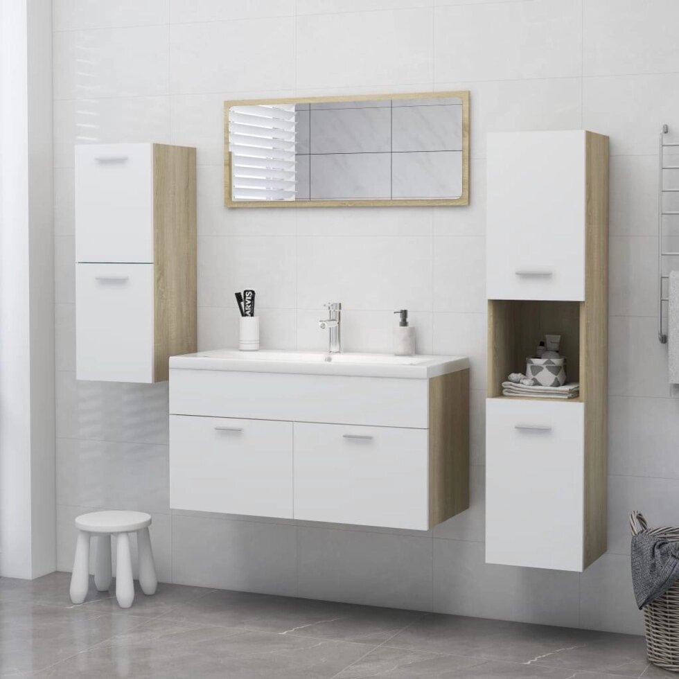 Шкафчик для ванной Белый и Дуб Сонома 11,8 x 11,8 x 31,5 ДСП