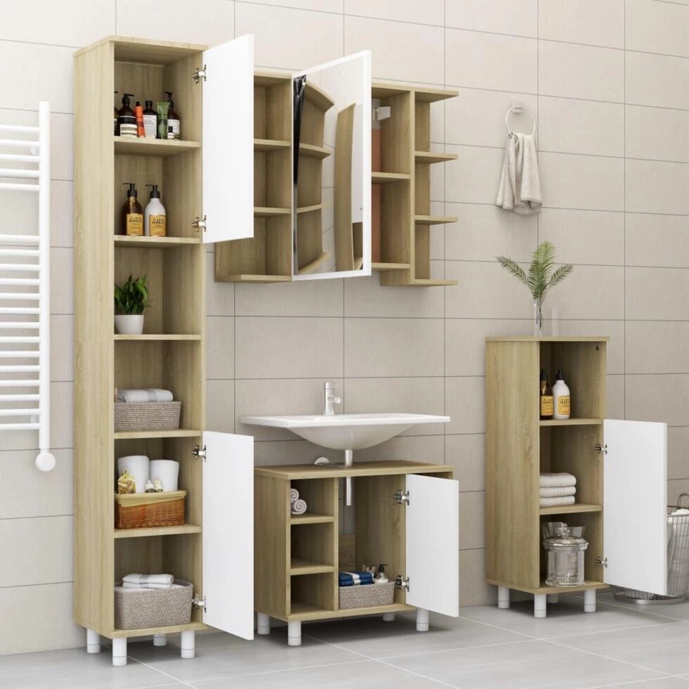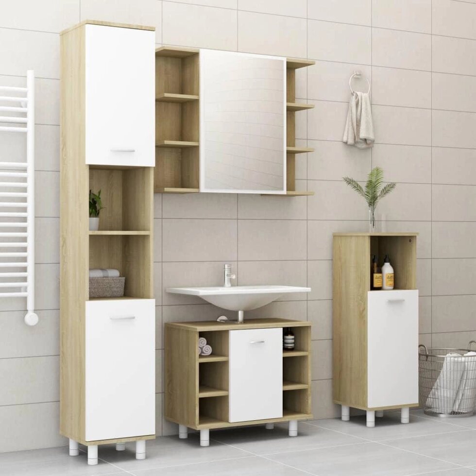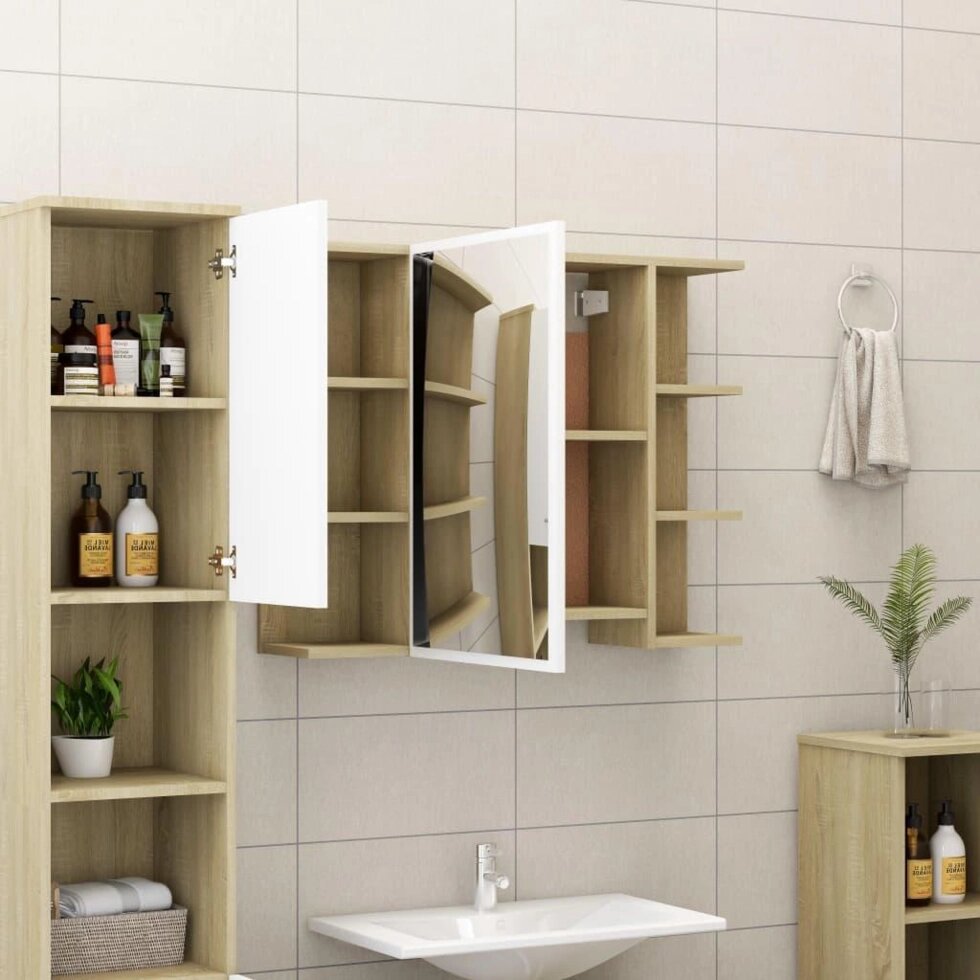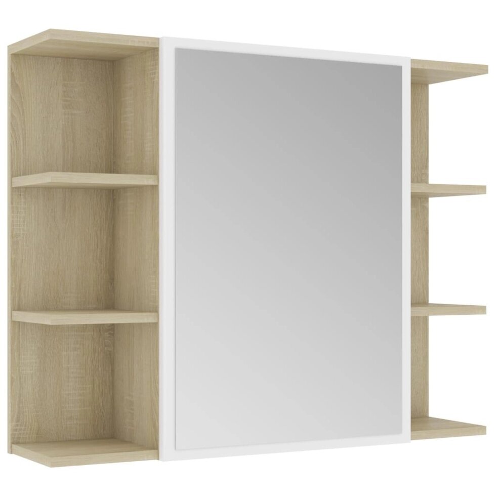 Зеркальный шкаф для ванной комнаты Белый и дуб Sonoma 31,5 x8,1 x25,2 ДСП