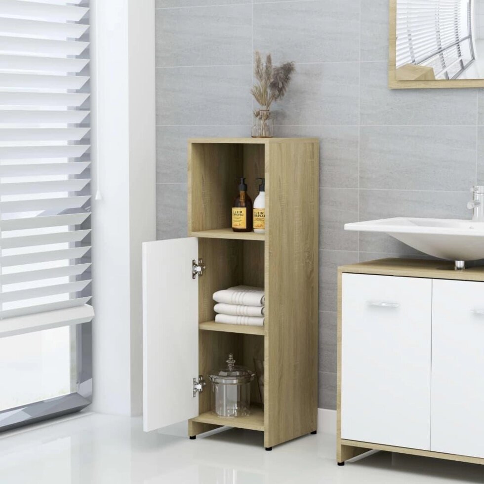 Шкафчик для ванной Белый и Дуб Сонома 11,8 x 11,8 x 37,4 ДСП