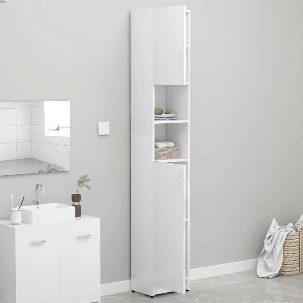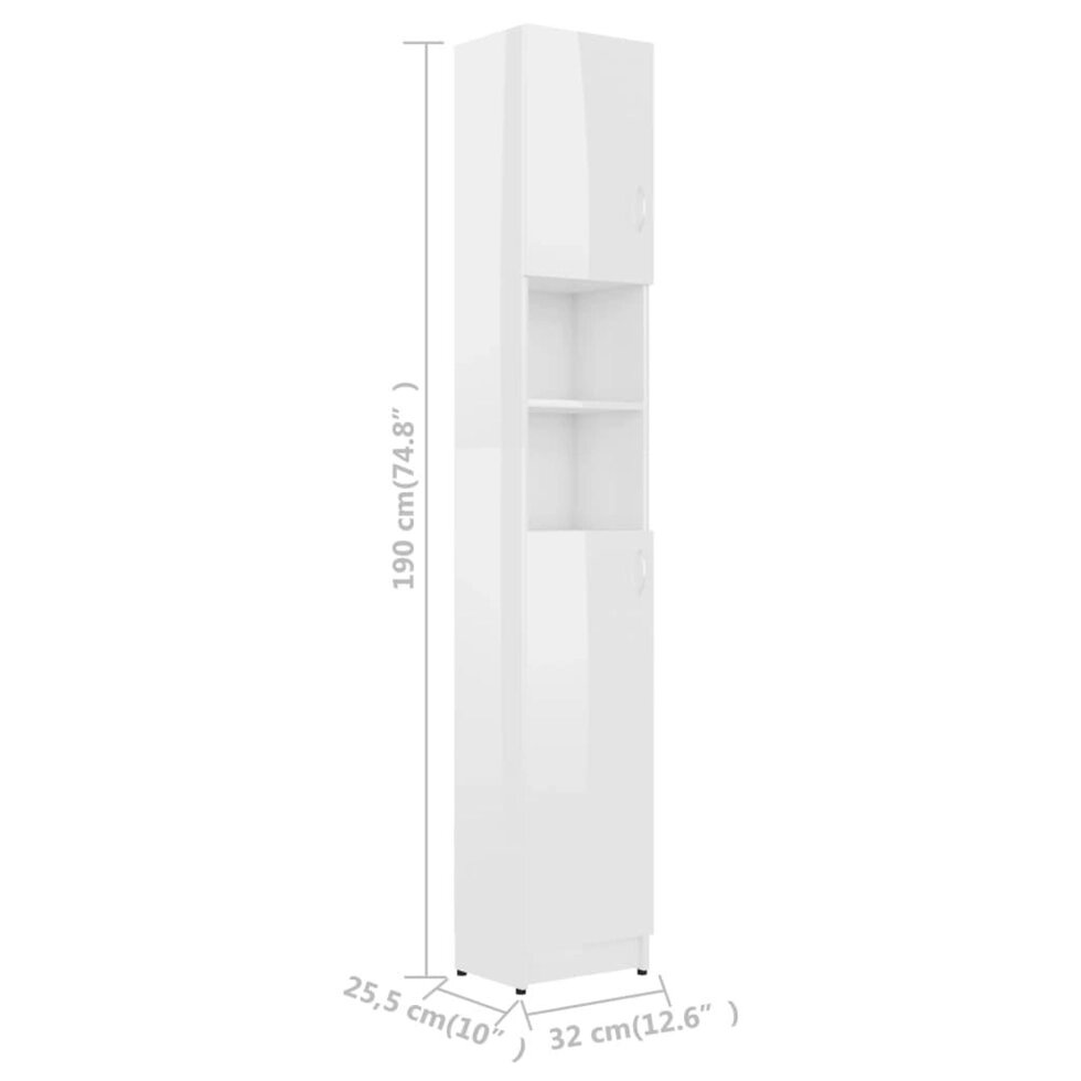 Шкафчик для ванной, глянцевый, белый, 12,6x10 дюймов x74,8 дюймов, ДСП