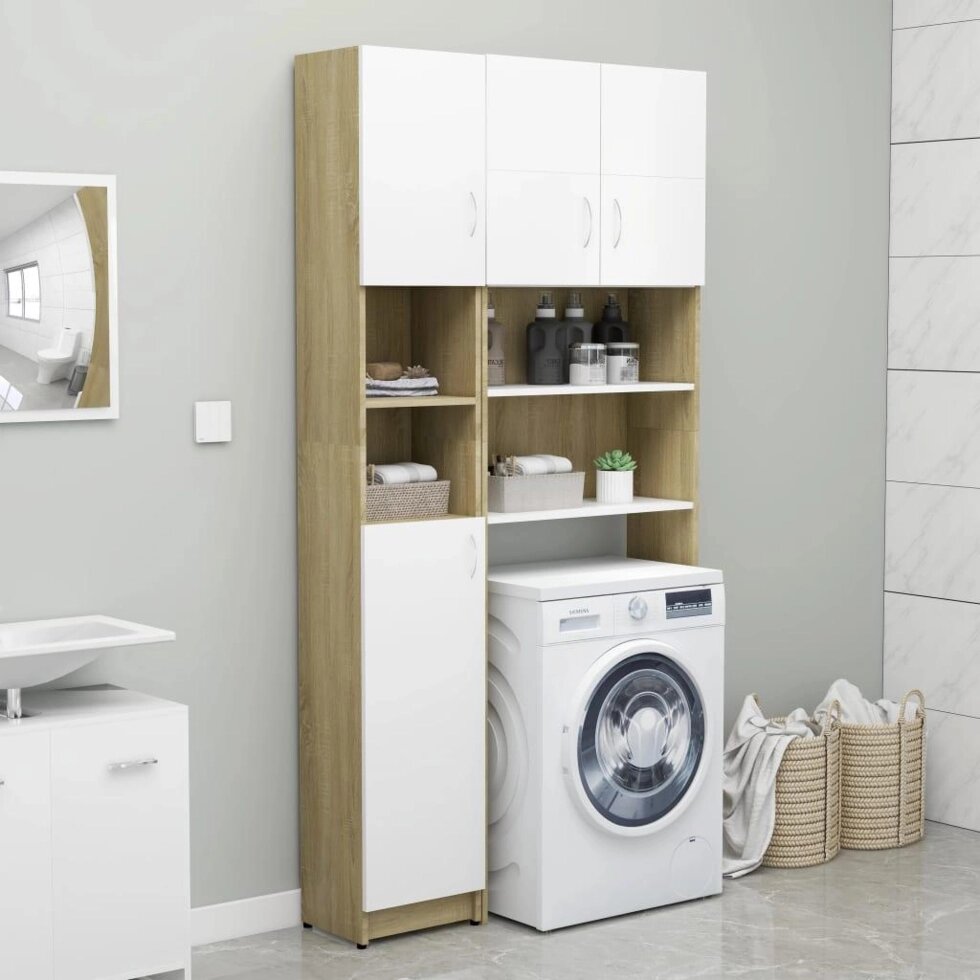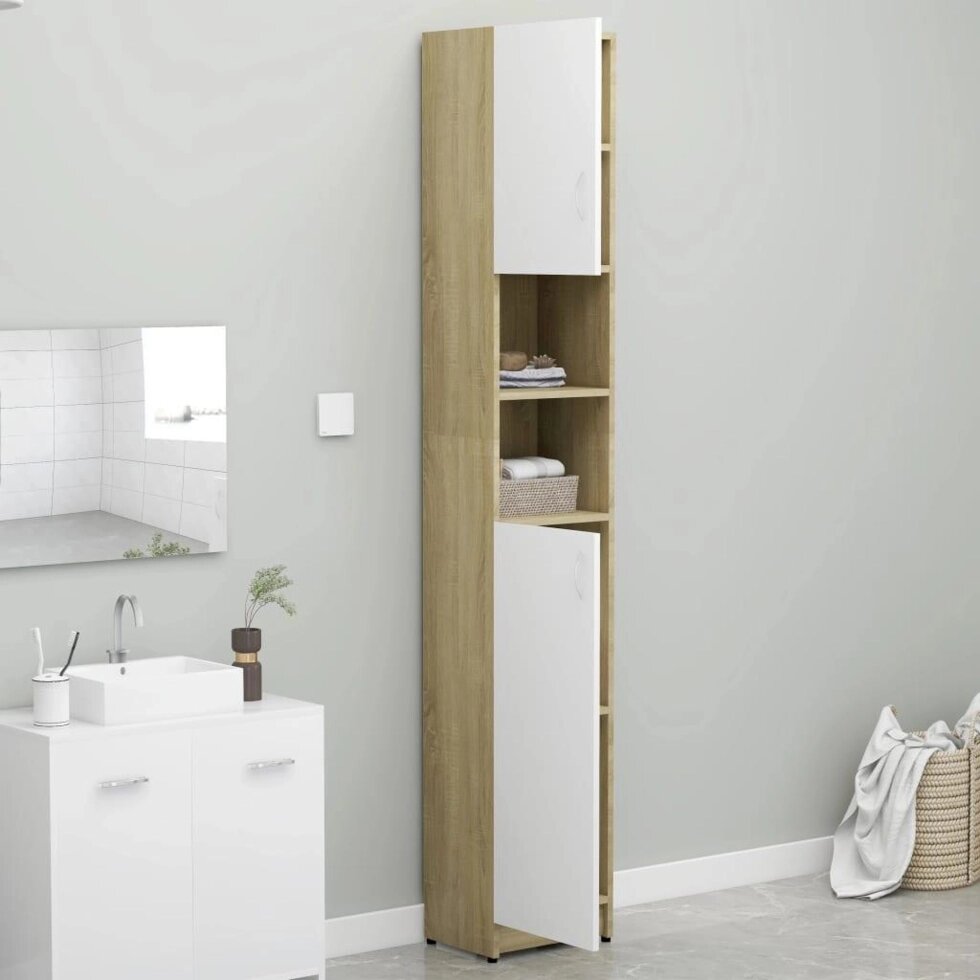 Шкафчик для ванной Белый и Дуб Сонома 12,6 x10 x74,8 см ДСП