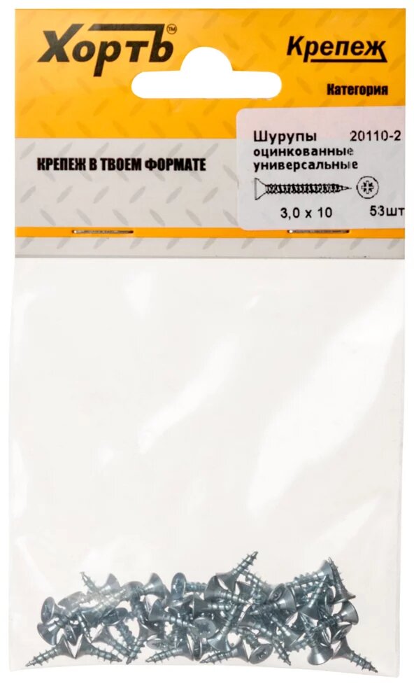 Шурупы оцинкованные, универсальные 3 х 10 (фасовка 53 шт)