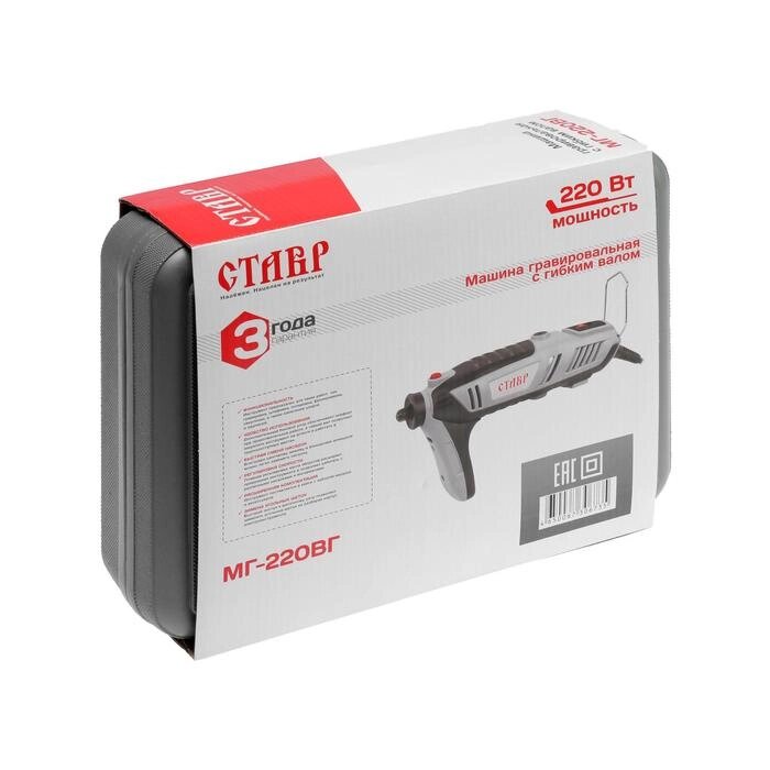 Гравер 'Ставр' МГ-220ВГ, с гибким валом, 220 Вт, 40000 об/мин, цанга 2-3.2 мм, насадки, кейс