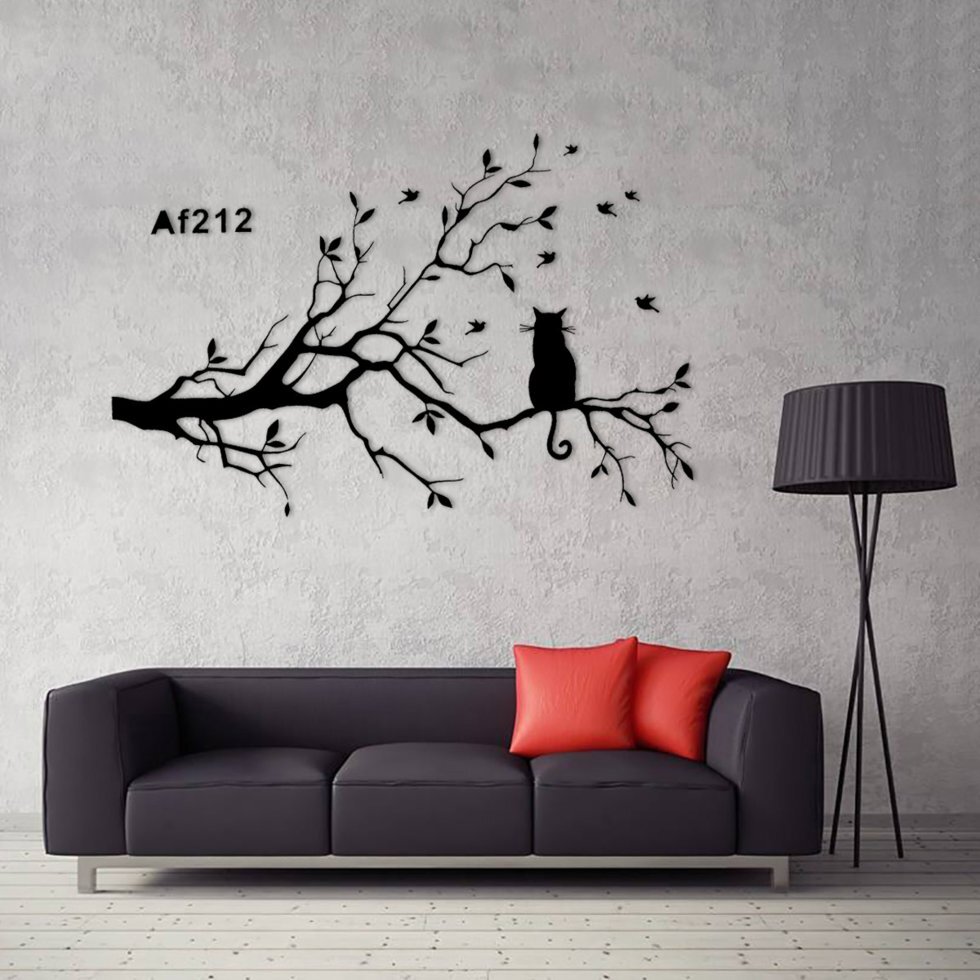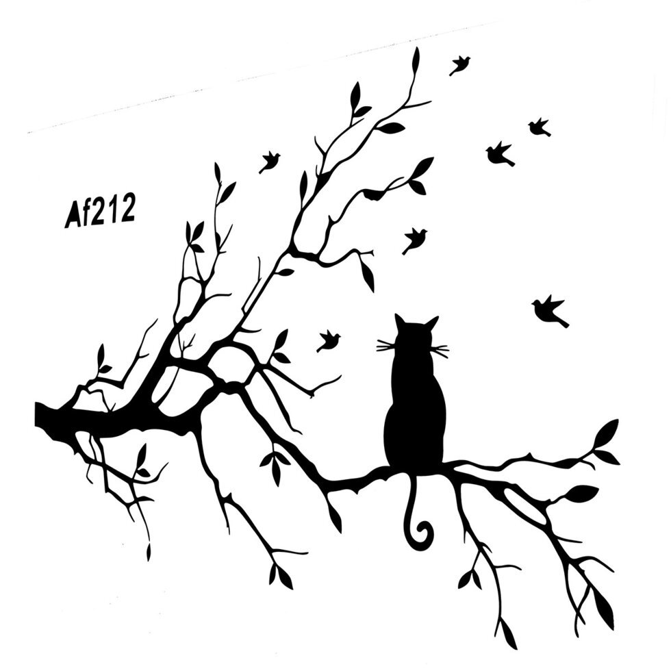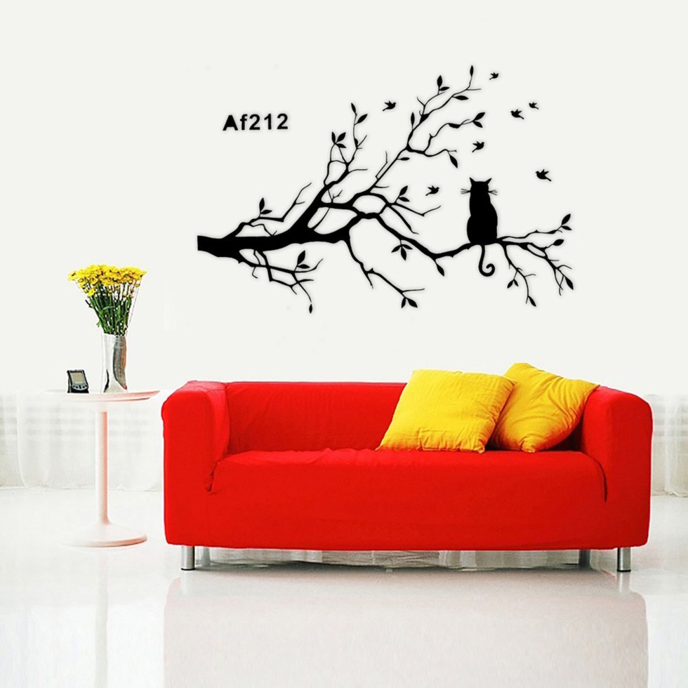 Современный Кот Дерево Ветви Стикер Стены Диван Ресторан Декор Стены ПВХ Съемный