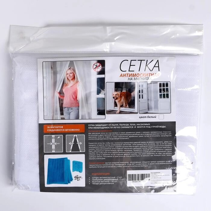 Сетка антимоскитная для дверей, 100 210 см, на магнитах, цвет белый
