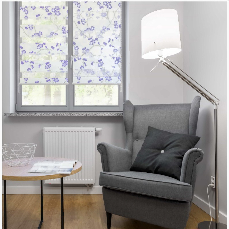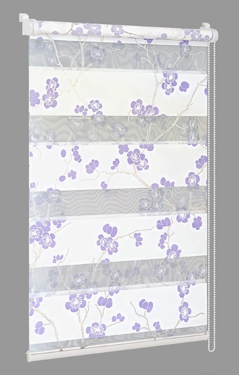 Рулонная штора Delfa Сантайм День-Ночь Декор МКД DN-46074 (52x160, сакура/фиолетовый)