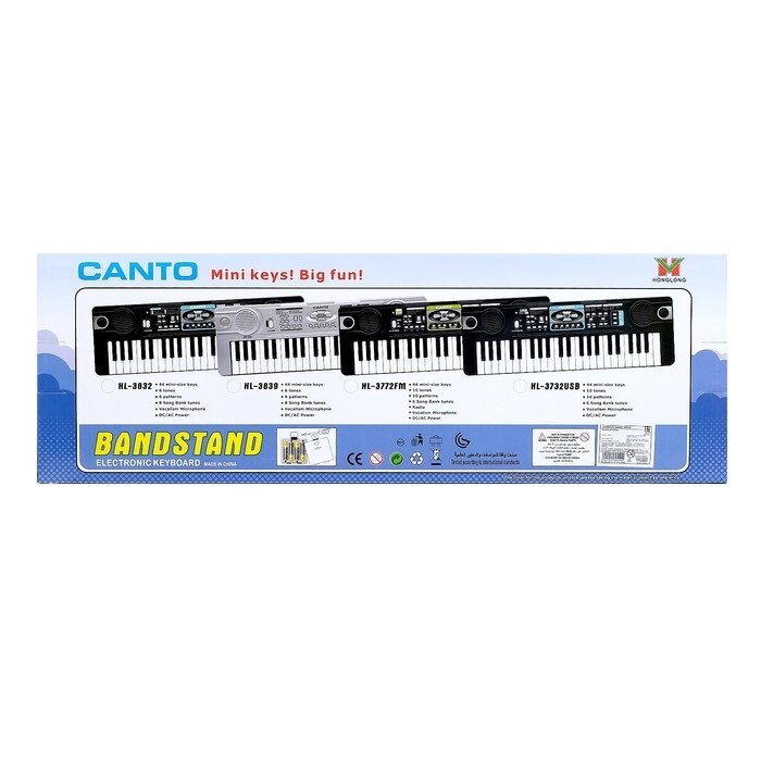 - Дополнительные функции Регулировка темпа, Музыкальные эффекты, Запись и воспроизведение, Демонстрационные мелодии/песни, Регулировка громкости, FM-радио