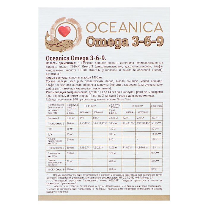 БАД к пище «Океаника Омега 3-6-9», 30 капсул по 1400 мг